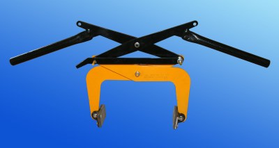 Uchwyt do podnoszenia i transportu bloczków betonowych , krawężników , elementów równoległych TYP UBK-200 DOR - 200kg i zakresie chwytania szczęk 100-300mm. Można go stosować jako podnoszenie ręczne lub do widocznych otworów zamontować zawiesie 2 - cięgnowe i podnośić za pomocą urządzenia dźwigowego.Uchwyt wykonany w wersji półautomatycznej.