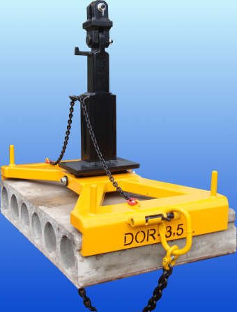 Na zdjęciu półautomatyczny uchwyt do podnoszenia i transportu płut strunobetonowych Typ USP-ST 1,5t DOR 1500kg i zakresie chwytania płyt 1156mm.