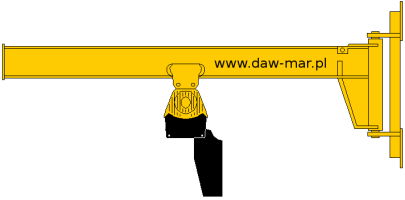 Zwarta konstrukcja stalowa. Zasięg obrotu 180o. Parametry techniczne dobierane są do potrzeb i wymagań Klienta. Wyposażony jest we wciągnik ręczny bądź elektryczny. Malowanie antykorozyjne: podkład oraz kolor żółty.