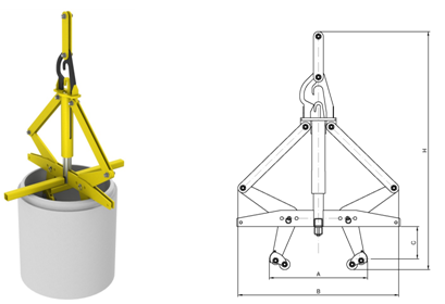 Automatyczny uchwyt przeznaczony do podnoszenia i transportu kręgów betonowych. Prosty i łatwy w zastosowaniu. Uchwyt może być wykonany z uchwytem do wózka widłowego.