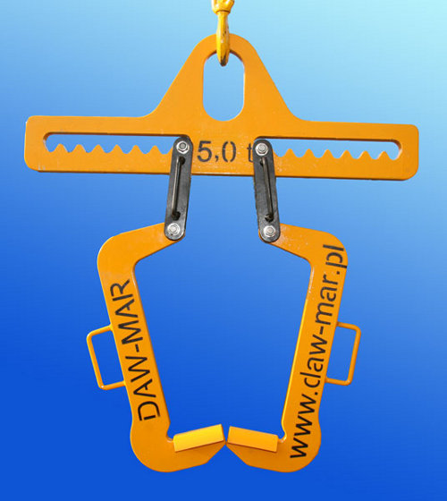 Na zdjęciu trawersa do kręgów Typ UPKB-5 DOR-5000kg i zkresie chwytania kręgów 400-1100mm w położeniu max.