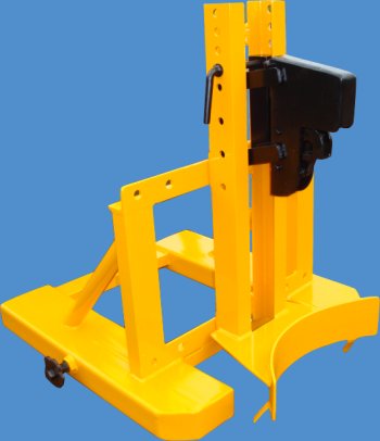 Uchwyt widłowy do beczek służy do transportu beczek stalowych z kołnierzem - o pojemności 215l. Transport odbywa się w pozycji pionowej przy pomocy samozaciskających się kleszczy chwytającyh górną krawędź przenoszonej beczki.