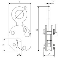 Zapewnia bezpieczny transport pojedyńczych blach w pionie, z możliwością zginania się w jednej płaszczyźnie. Wyposażony w zamek oraz szczęki ze stali hartowaniej. Współpracuje z zawiesiem jednocięgnowym linowym lub łańcuchowym. Stosując dwa uchwyty lub więcej jednocześnie używać razem z trawersą.