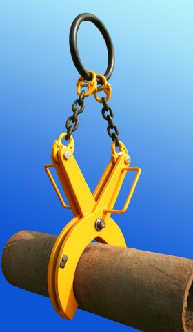 Uchwyt UsR przeznaczony jest do podnoszenia i transportu elementów okrągłych. Bardzo pomocny do podnoszenia rur i prętów. Udźwig podany jest dla 1 szt. Przy długich elementach stosować razem z trawersą.