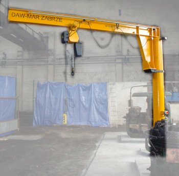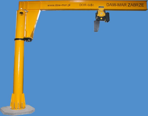 Zwarta konstrukcja stalowa. Zasięg obrotu 270o. Parametry techniczne dobierane są do potrzeb i wymagań Klienta. Wyposażony jest we wciągnik ręczny bądź elektryczny. Obrót wysięgnika ręczny. Malowanie antykorozyjne: podkład oraz kolor żółty.